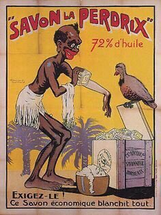 而非洲人就更别说了,法国老牌殖民大国,有很多过去的广告都不尊重黑人,描绘的很夸张,瘦骨嶙峋的身体,厚厚的嘴唇,穿着很简陋,简直原始人。