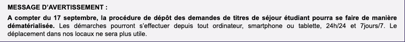 无论您是刚到法国需要激活你的VISA,还是您的签证或居留在9月20日之后过期第一次申请学生居留卡,或者是第N次更新学生居留卡,都可以在这里完成!