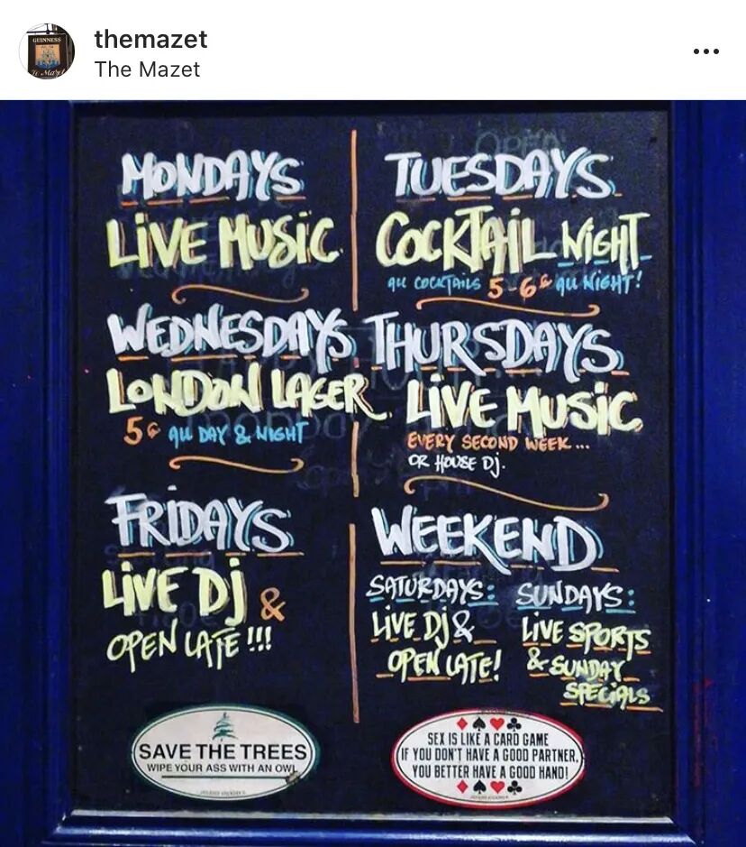 如果是想简单喝杯酒、吃点下酒菜,可以来这家英式酒吧,每天晚上都安排了不同的酒品优惠和现场活动,来这儿你不会无聊的!