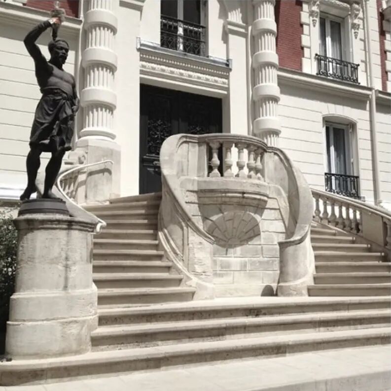 这条路上有六栋建于19世纪的超豪华建筑群,从入门台阶上的文艺复兴时期风格的举着火炬的两座雕塑,就能看出这里绝对不一般:这里有他们的守护神。