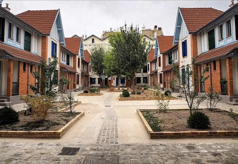 它是一片建于20世纪初的工人街区,周围环绕着500平方米的绿色庭院。