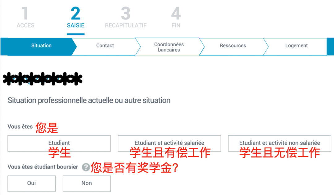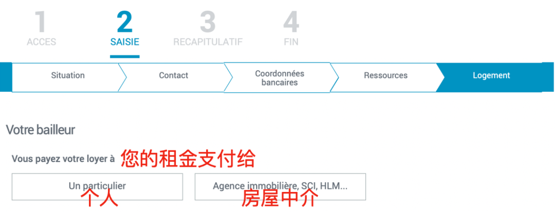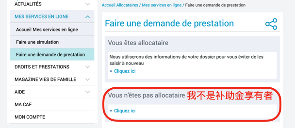 2. 点击“Vous n'êtes pas allocataire”(我不是补助金享有者)。