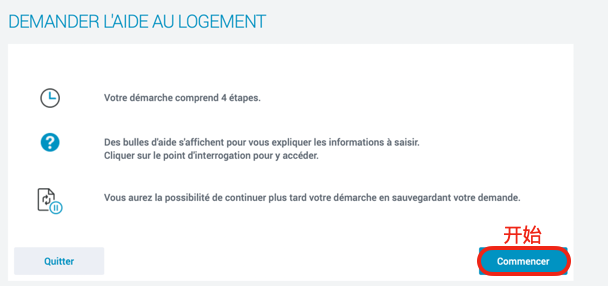 4. 点击“Commencer”(开始)。