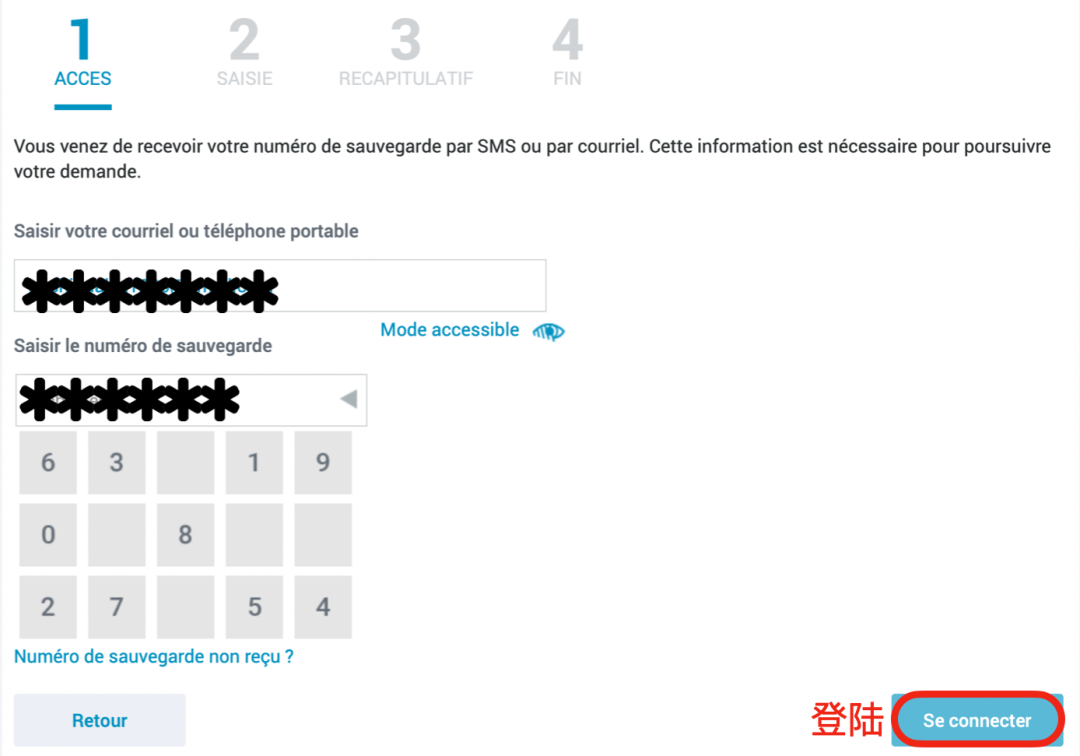 3. 点击“Faire la demande”(开始申请)。