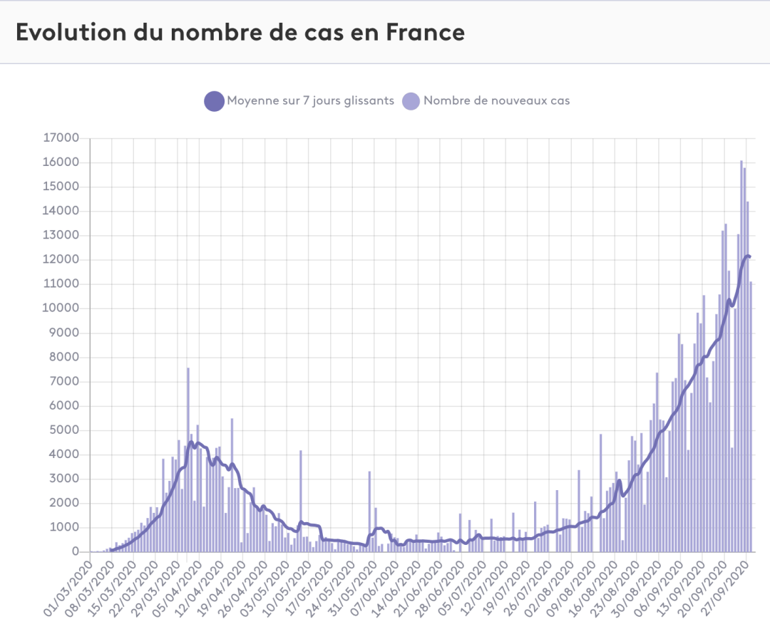 要知道,就算是在疫情最严重的三四月份,法国每日的新增人数最高也只达到过8000多人。