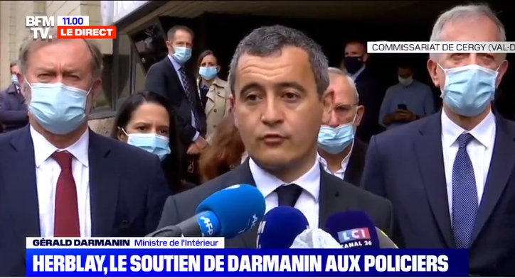10月7日周三22点半,两名Val d'Oise 的警察被三人袭击。法国内政部长杰拉尔德·达曼宁(Gérald Darmanin)本周四早上前往看望时得知,当时两名警察身着便服,正在Herblay的一个工业区执行调查任务。