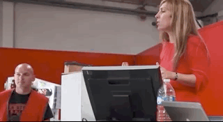 而在台上,一位女士正在充满激情地叫卖:「五十欧一次!五十欧两次!这款我自己都在用!很好用的!五十欧三次!」