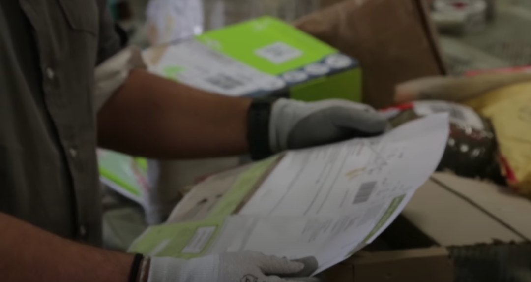 如果找到了客户的信息,那么快递员依然会将这些包裹送出去。像这个包裹就运气比较好,因为里面放了张购物的发票,上面有订货人的地址。