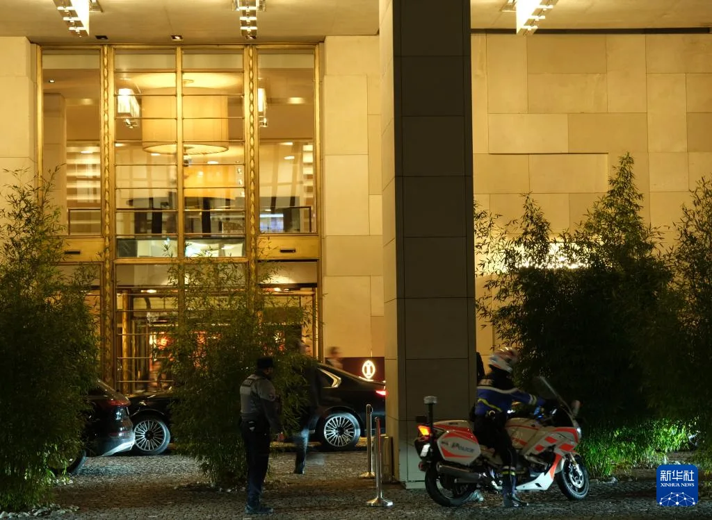 2月17日晚,在瑞士日内瓦,参与俄美乌三方谈判的人员在结束首日会谈后乘车离开会场。新华社记者 马汝轩 摄