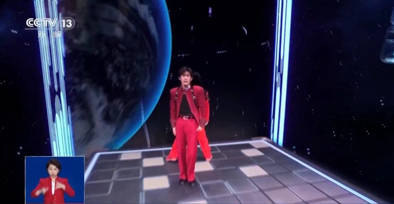总台《2026年春节联欢晚会》虚拟包装团队负责人 左宏达:在《智造未来》这个节目里面,我们采用了XR(混合现实)的技术,在节目设定上来说,想让这两个表演者能从一号厅转移到一个科技感十足的空间里,场景表演结束以后,再拓展回一号厅的这样表演,无缝穿越,有视觉穿梭的一个感受。