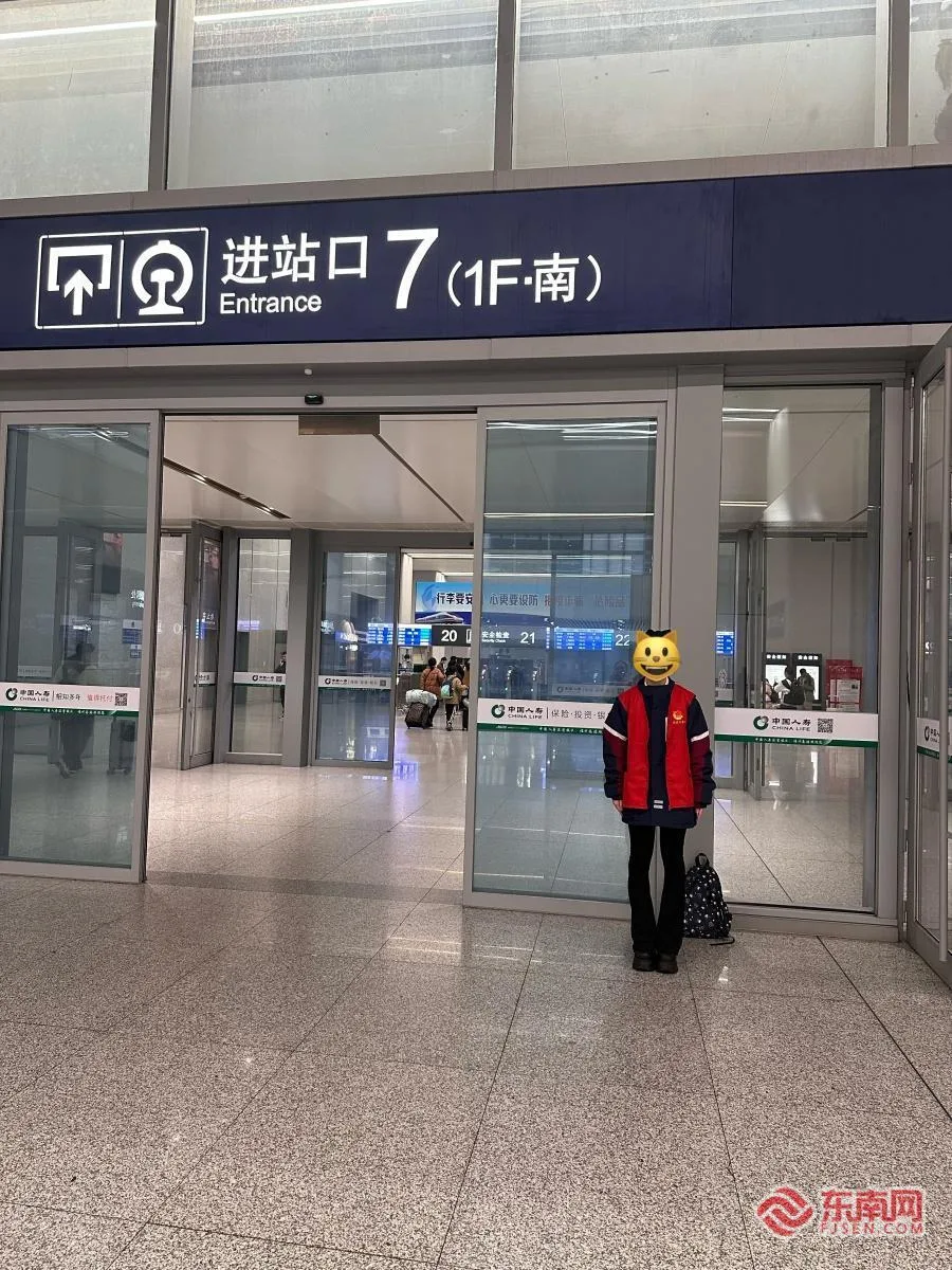 东南网2月18日讯(本网记者 林夏悦 文/图)“您好,请问卫生间在哪?”“网约车怎么走?”“去坐机场巴士是往这边吗?”……春运期间的福州火车南站,人潮涌动,类似的问询声此起彼伏。面对旅客归心似箭的眼神,记者放下采访本,穿上红马甲,以南站志愿者的身份,站在了客流量较大的南7进站口旁,尝试用最直接的指引,为人们的回家路增添一点温度。