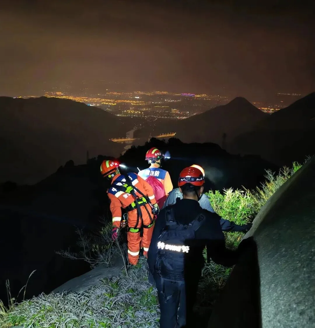 此时山下,万家灯火通明、爆竹声声,那是家的方向,也是被困者心中最渴望抵达的地方。救援小组根据无人机回传位置,在黑暗中艰难攀爬,于20时20分成功与一家三口汇合。救援队员为三人补充保温毯等物资后,布设绳索、交替搀扶护送下山。0时35分,历经近6小时生死鏖战,一家三口终于安全抵达山脚,重回万家灯火之中。