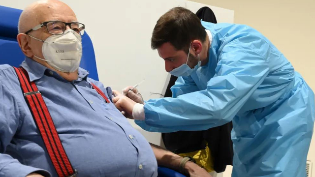 ▲目前,除了丹麦、挪威、保加利亚、冰岛、爱尔兰和泰国等国暂停接种阿斯利康疫苗,奥地利、罗马尼亚、爱沙尼亚、拉脱维亚、卢森堡、立陶宛、意大利等一些欧洲国家也暂停使用涉嫌问题批次的阿斯利康新冠疫苗。图为医护人员在意大利罗马为一名老人接种新冠疫苗。(新华社图)