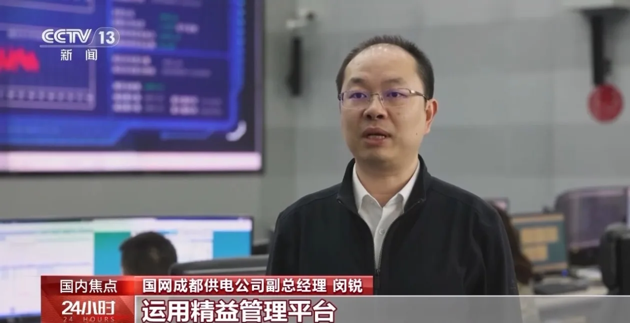 国网成都供电公司副总经理 闵锐:成都有超2500公里的地下输电电缆,100余名专业人员运用精益管理平台,实现毫秒级响应和智能研判,守护电缆网运行。春节期间,我们安排超1000人坚守岗位,依托智能调度等数智化系统,精准匹配节日用电需求,保障全市人民欢乐祥和过节。