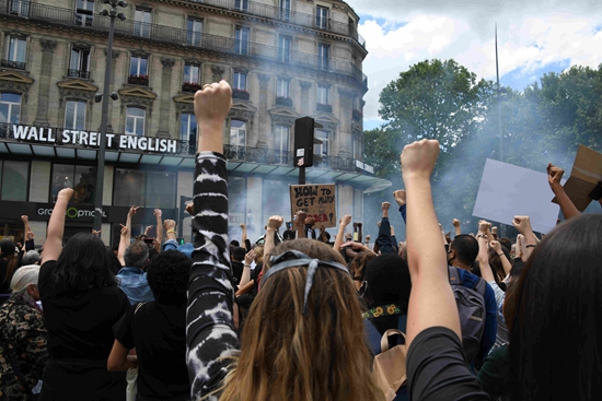 2020年6月13日,法国首都巴黎万余人继续示威抗议种族歧视及警察暴力。(图片来源:中新社)