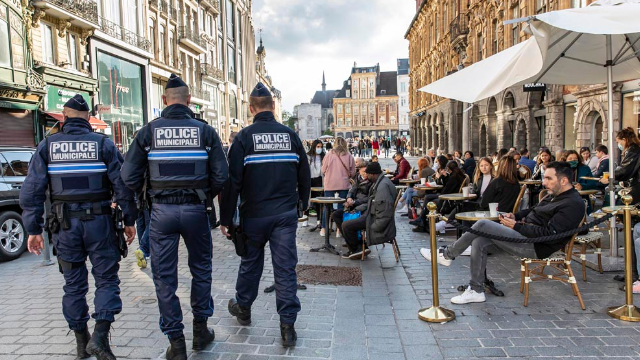 人们在法国里尔市中心休闲。(图片来源:新华社)