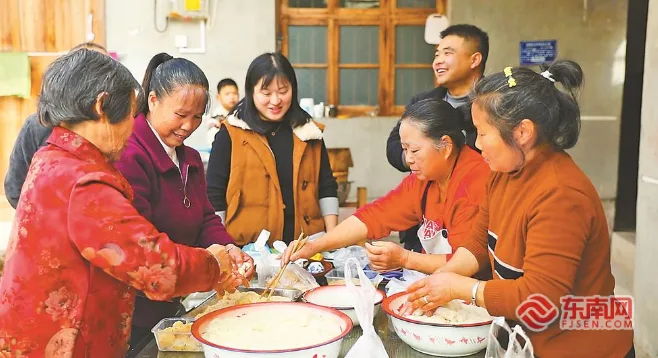 2月16日,泰宁县杉城镇大坪村的广场上热气缭绕、米香弥漫。村民围聚在传统石臼旁,木槌起落有序的捶打声与阵阵欢笑声交织成一片暖意融融的景象。福建日报记者 庄紫怡 见习记者 李子衡 摄