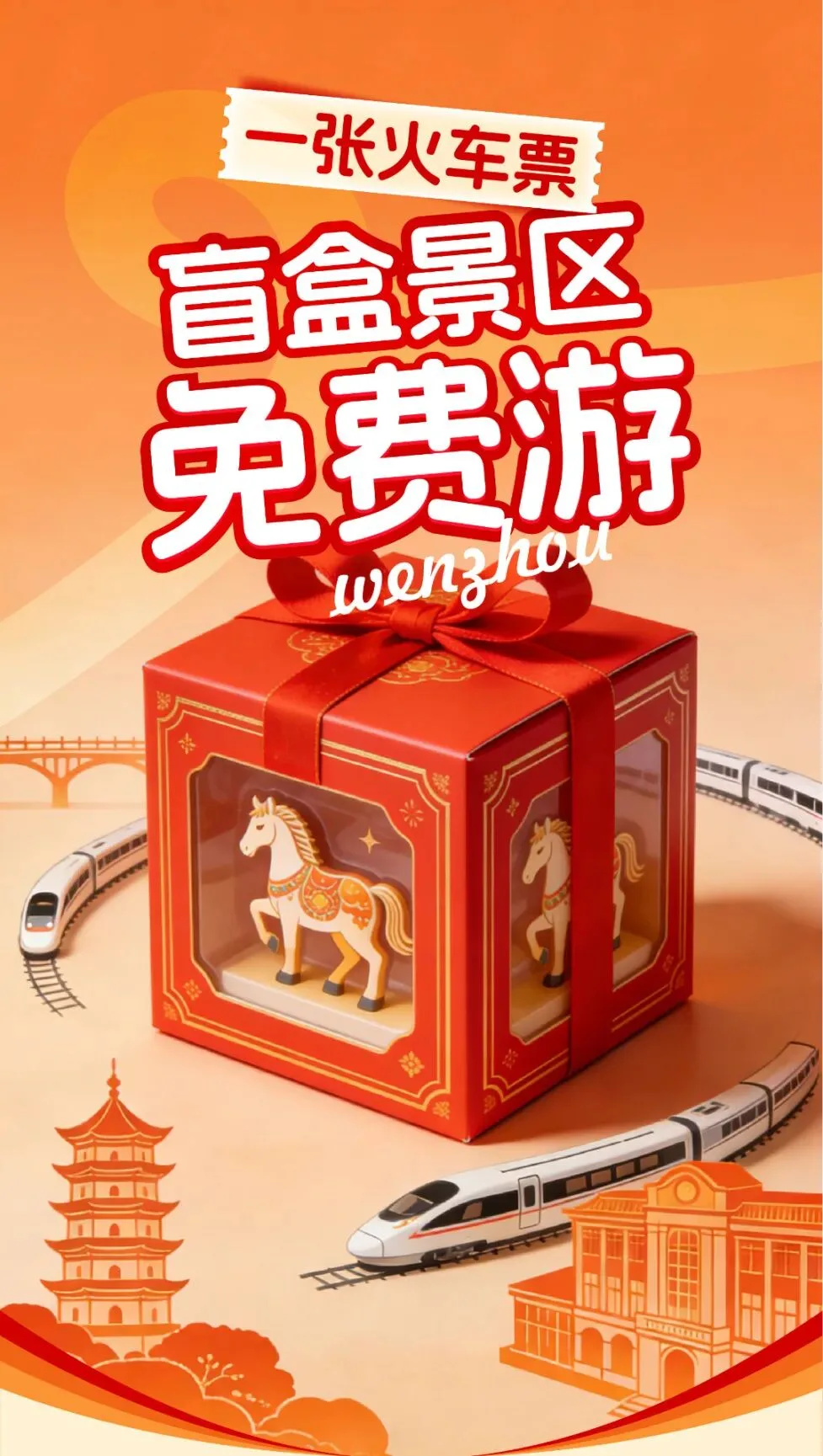 玩法升级,让体验感惊喜不断。创新推出“一张火车票·盲盒游温州”活动,以“盲盒+免费”的新颖形式,为出游增添惊喜与便捷。2月15日至23日期间,每日随机解锁3-4个“盲盒景区”,游客凭3天内市外抵温火车票及身份证,即可免费游览对应景区。