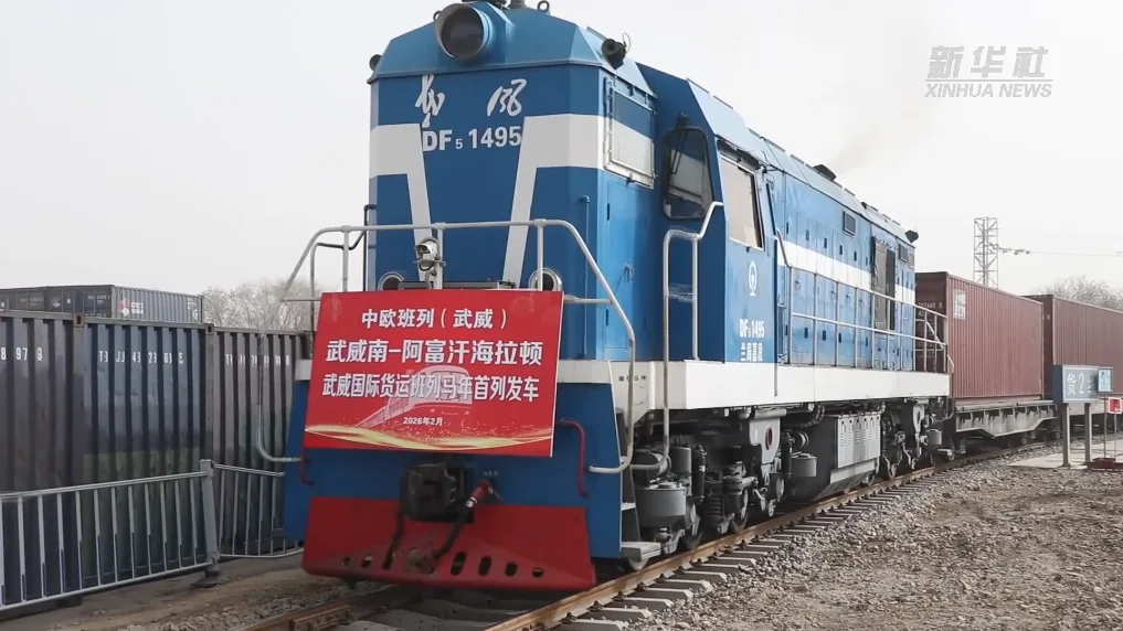 2月21日,满载55个集装箱货物的75188次“天马号”国际货运班列从武威南站鸣笛启程,驶向哈萨克斯坦、乌兹别克斯坦、吉尔吉斯斯坦、塔吉克斯坦、阿富汗五国,这是甘肃省武威市马年开行的首列国际货运班列。