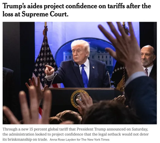 更值得注意的是,从近两天动作看,白宫的核心优先级并不是“尽快把钱退回去”,而是“尽快把关税工具续上”。白宫一方面通过行政令,终止依据IEEPA加征的额外从价税,另一方面又迅速依《1974年贸易法》第一百二十二条祭出为期150天的临时全球15%关税,同时加大利用301条甚至232条等传统工具,继续搭建新的关税墙。这套动作释放的信号十分明确:关税杠杆要继续用,至于已经收来的税款怎么退、退多少,姑且交给诉讼和程序去磨。换句话说,即便法院逼着政府退钱,白宫也在试图通过新一轮、基于其他法律授权的关税,把现金流尽可能补回来。