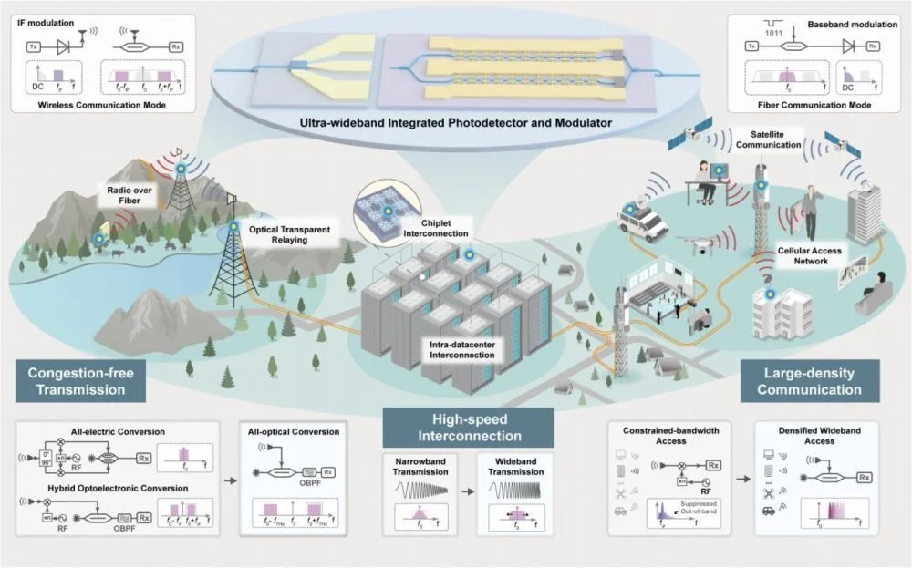 AI数据中心算力提升和下一代无线通信网络6G的蓬勃发展,要求在多样化场景满足信号的高速、低时延传输。然而,光纤通信与无线通信在信号架构与硬件约束上存在“带宽鸿沟”。