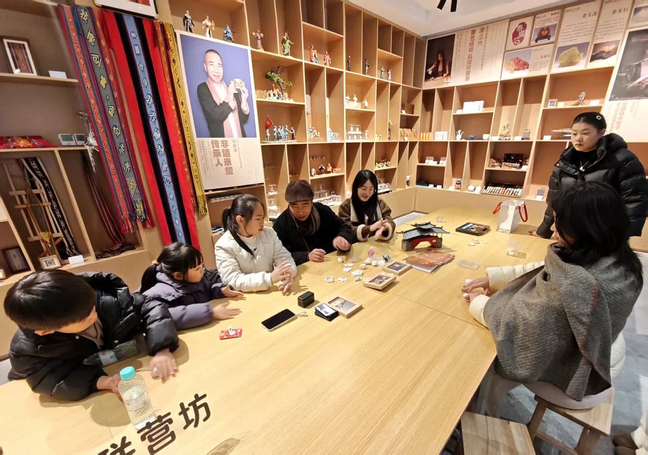 午饭后,林怡静带着我们直奔和亲子团约定的集合点。参观廊桥后,林怡静对亲子团带队人陈兰说:“泰顺县米塑非遗传承人张甜清在市集上的展示挺有趣,我们先去体验一下有廊桥风味的米塑吧。”当地好些非遗技艺正跨界与廊桥擦出火花,米塑就是其中之一。