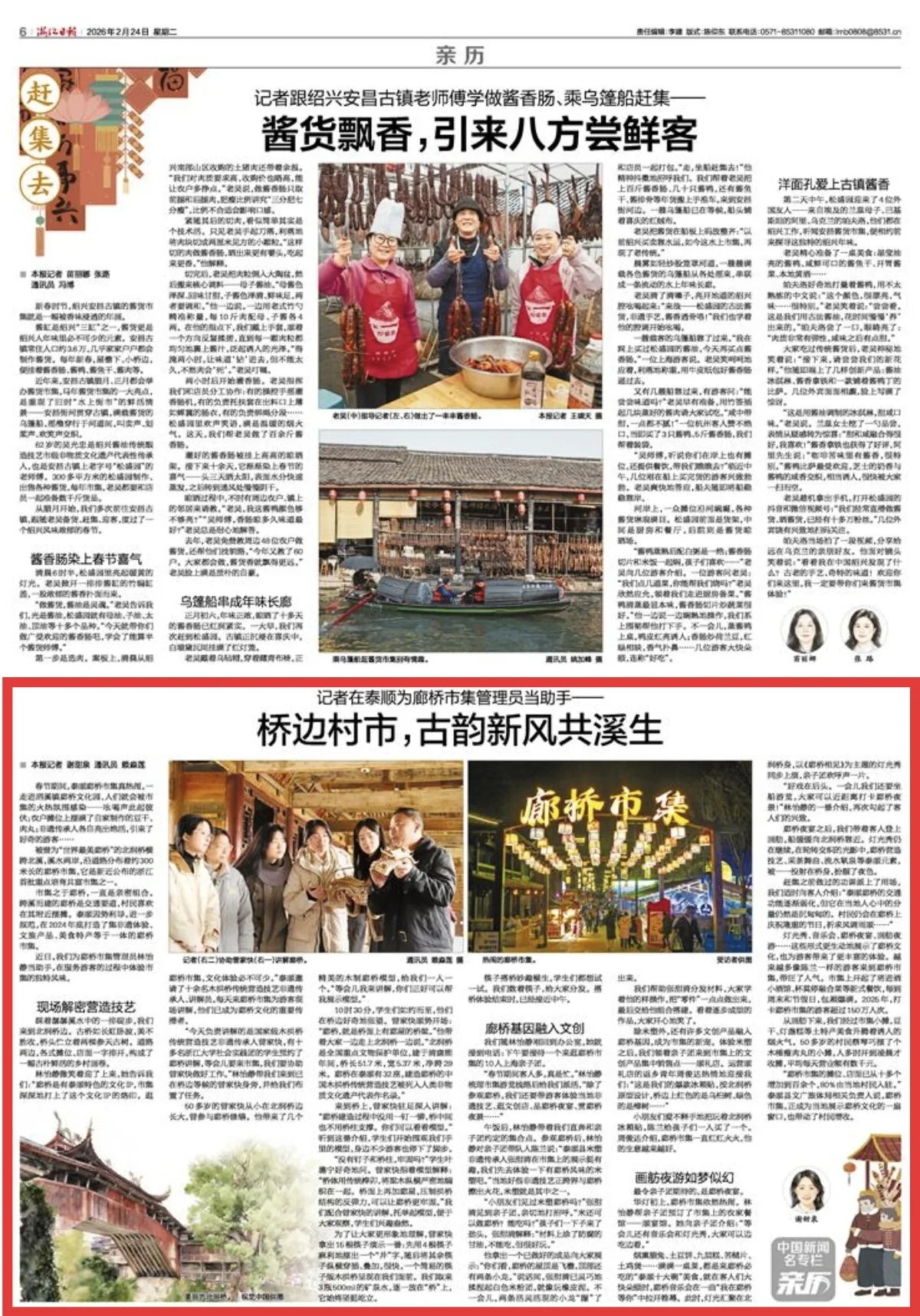 “春节期间客人多,真是忙。”林怡静梳理市集游览线路后给我们派活,“除了参观廊桥,我们还要带游客体验当地非遗技艺、逛文创店、品廊桥夜宴、赏廊桥夜景……”