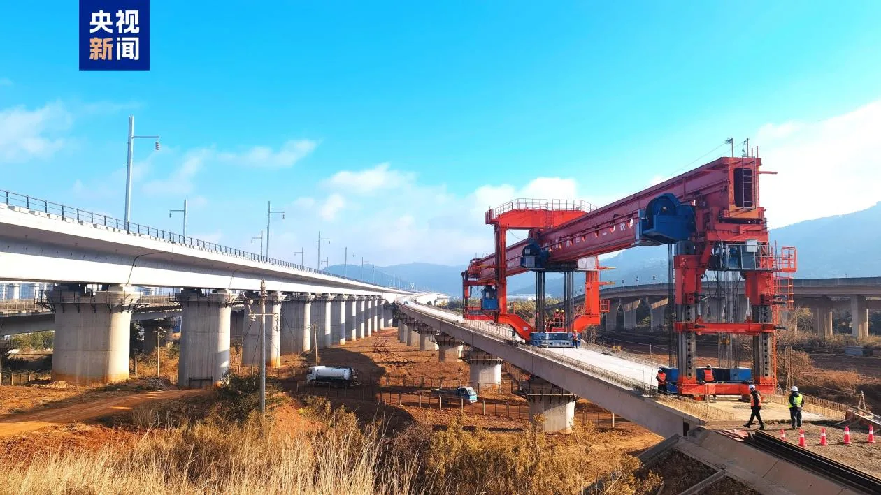 中铁二十四局渝昆高铁现场负责人胡根和介绍,为顺利完成架梁任务,我们全力推进技术工艺创新,积极引入北斗路径导航系统,打造“天、地、车”三位一体的技术架构,实现毫米级路径规划与动态纠偏,在经历49次线路封锁施工后,顺利完成309榀箱梁预制和架设作业。