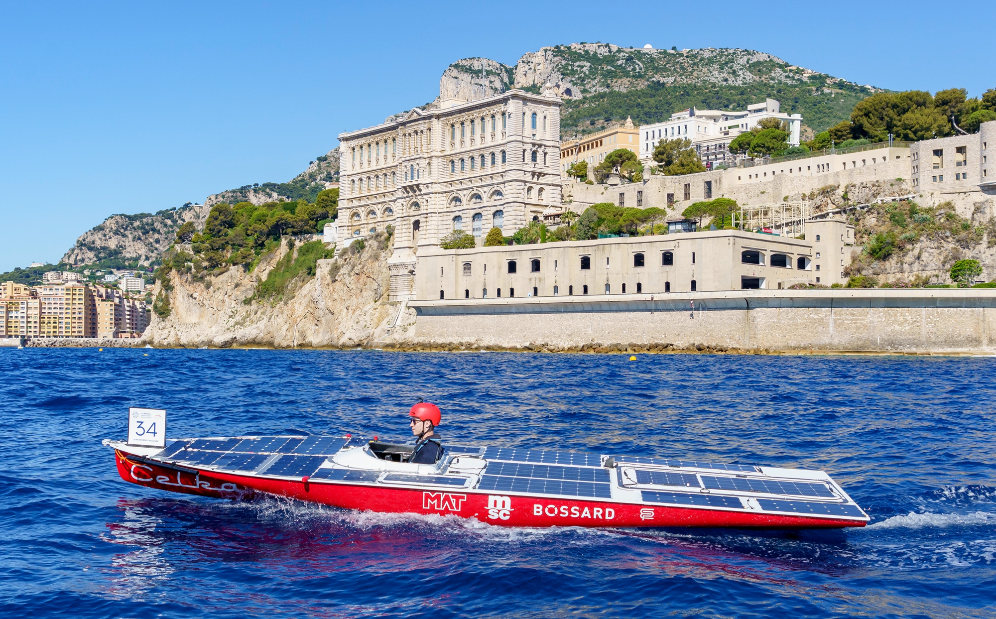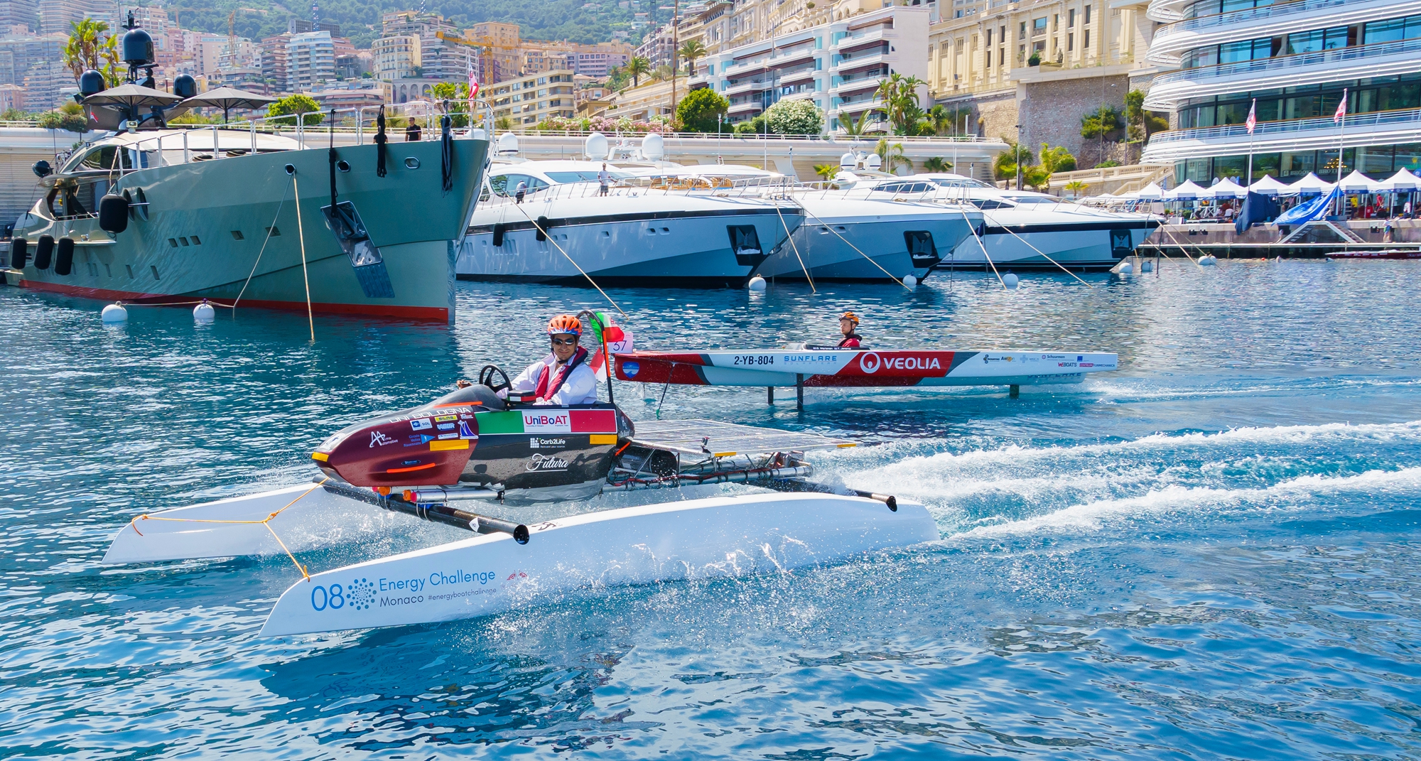 参加离岸赛组的荷兰代尔夫特理工大学的TU Delft Hydro Motion Team用一个新的配备了一个燃料电池的单体水翼船原型,取代了他们为过去两届比赛开发的模块化三体船。今年,共七个氢能船只设计将在摩纳哥展出,但它们并不是唯一的正在测试的新产品。正如希腊太阳神赫利俄斯每天用他的战车把太阳带过天空那样,希腊国立雅典理工大学Oceanos NTUA团队的学生选择了太阳能来为他们的推动器补充电能。今年,他们还开发了一个定制螺旋桨,以提高其推进系统的效率。他们不是唯一想到这个主意的人,来自意大利的UNIBOAT团队和法国凯捷工程团队(Capgemini Engineering)以及第一次参赛的印度Sea Sakthi团队也使用了一种特殊定制的解决方案。这是测试所提出的不同解决方案的绝佳机会。当一些团队正在尝试增加太阳能电池板以在比赛中尽可能多地回收能量时,法国Hydrovinci团队将在挑战赛中首次挑战使用风力系统在船上产生能量,根据测试数据,他们将是续航赛中的一匹黑马。由法国巴黎国立高等理工学院学生组成的Caiman ENSTA团队正专注于用新设计减少阻力,以及用新的螺旋桨喷嘴提高推力。这群法国学生们还选择了可回收材料来建造他们的船只,以达到减少碳足迹的目的。