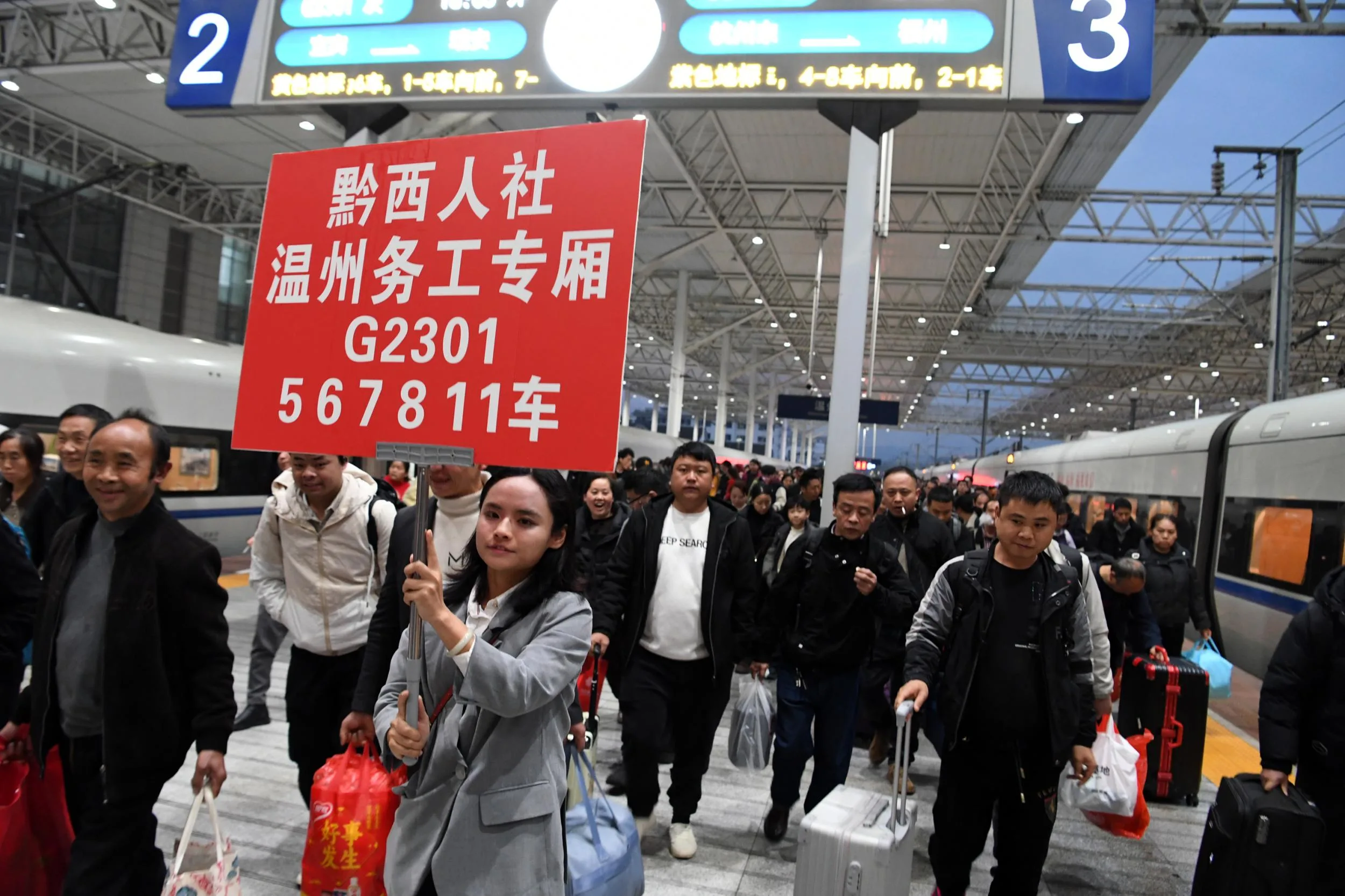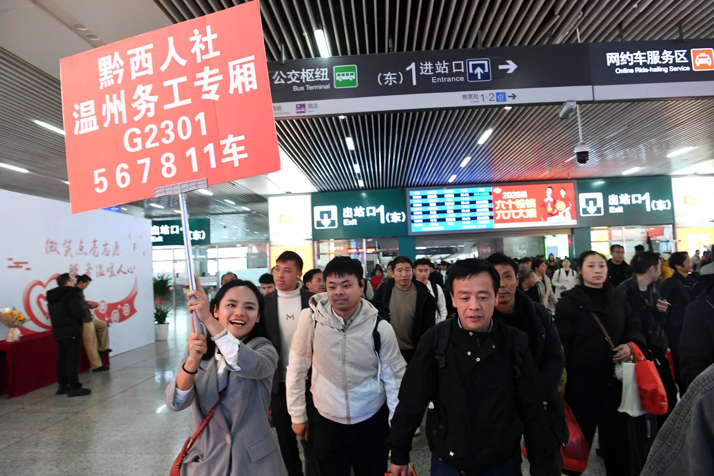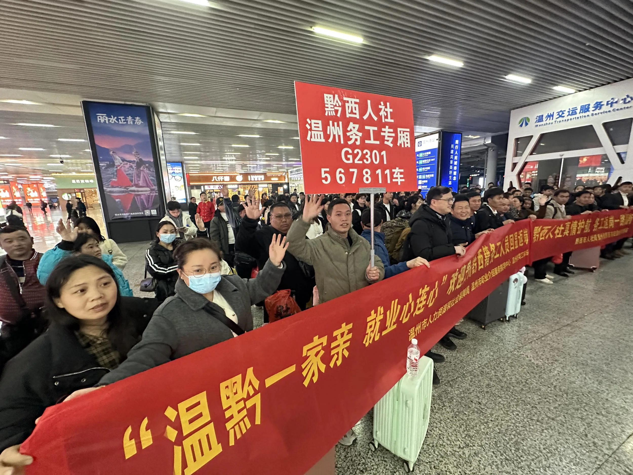 温州网讯 2月24日17点58分,载着贵州毕节市黔西市220名来温返岗人员的G2301准时驶进铁路温州南站。温州市人社局联合温州市零工市场的工作人员早已等候接站点,带着诚意与服务迎接远道而来的黔西老乡。