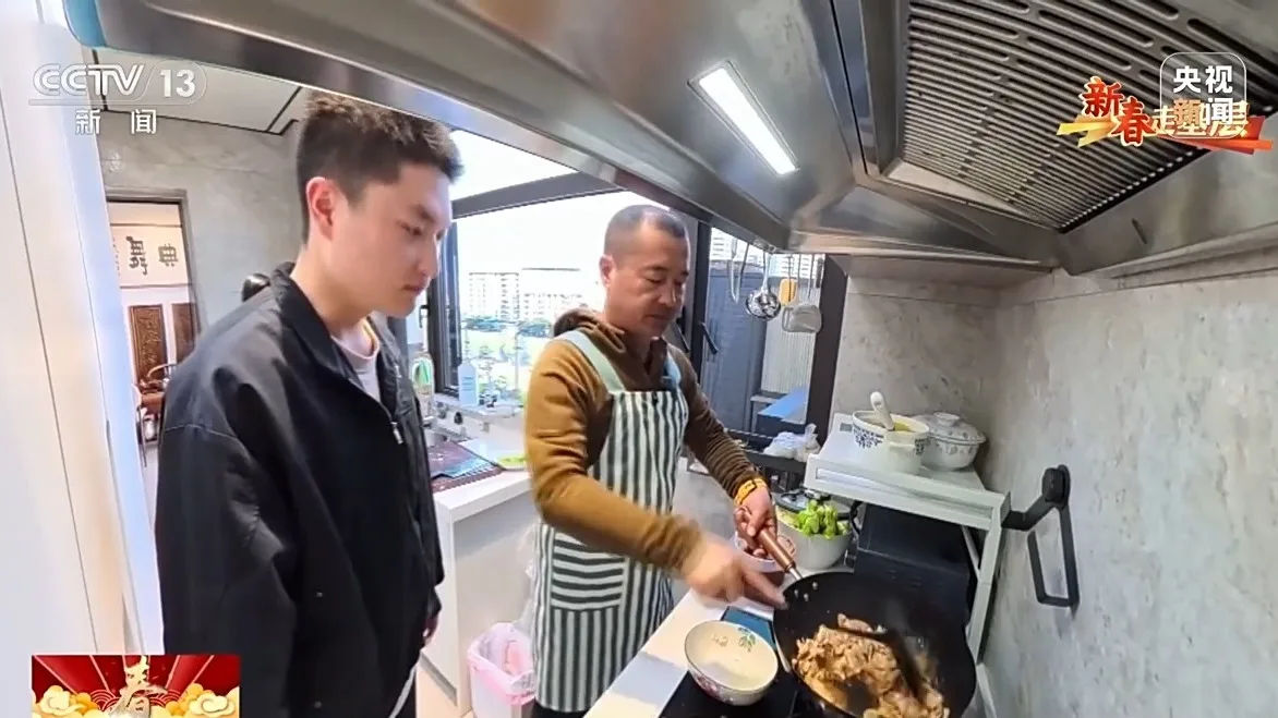 除夕当天,杨文龙邀请我们到他家做客。在这里,我们看到了他铁汉柔情的一面。在外他是忙碌的总导演,在家里,他则是贴心爱人。在外指挥演员方阵,在家一样能把年夜饭做好。
