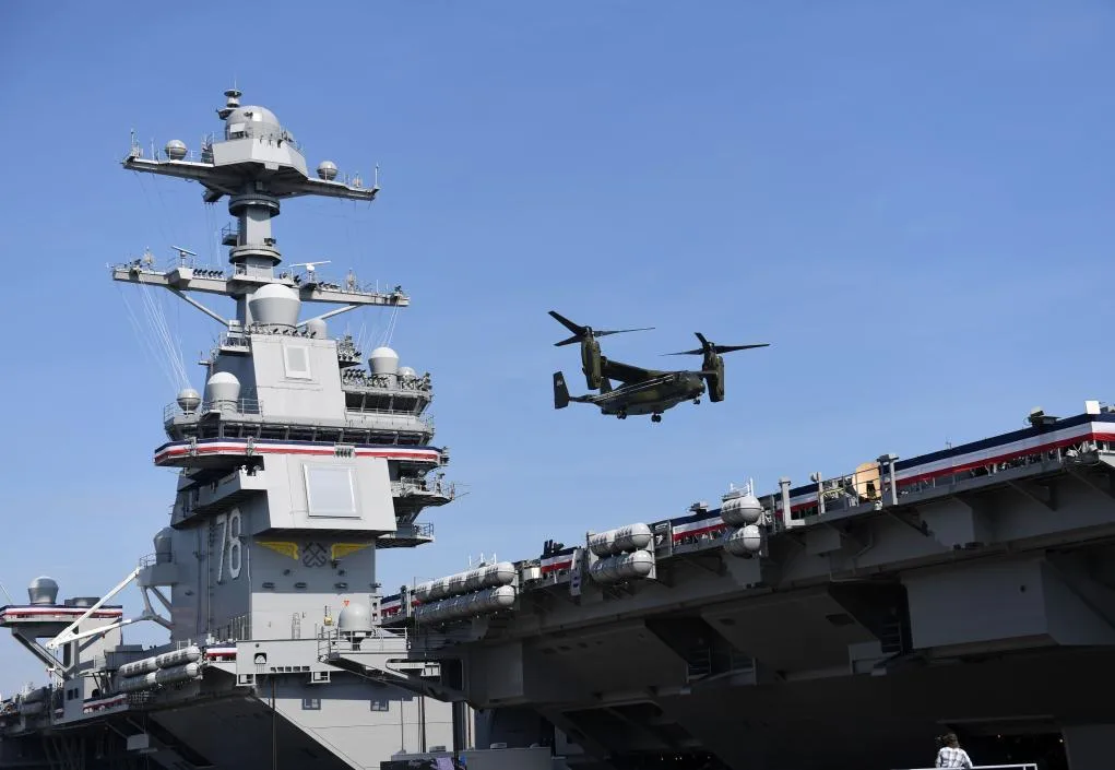2017年7月22日,美国海军“福特”级核动力航母首舰“杰拉尔德·福特”号在弗吉尼亚州诺福克海军基地正式列编服役。新华社记者殷博古摄