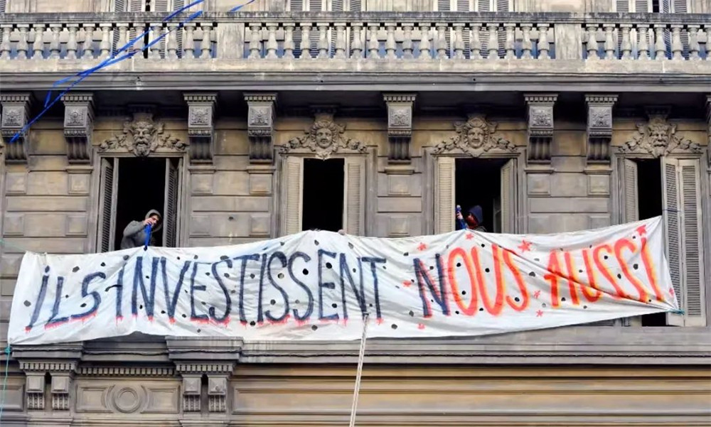 ▲2008年11月22日,一些擅自占房者在马赛一座建筑物上放置了横幅。(法新社图)