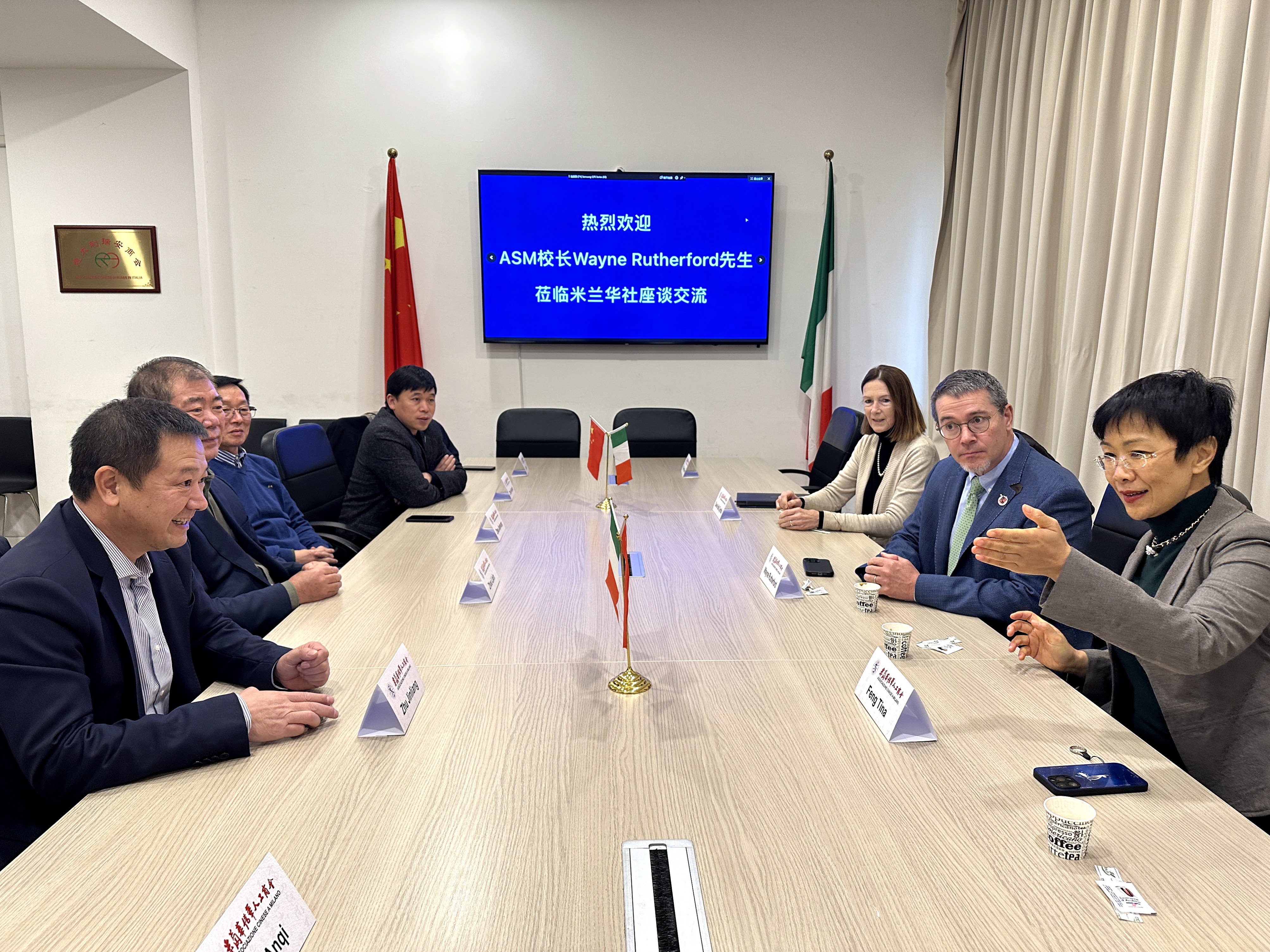 意大利《华人街》消息:11月29日下午,米兰华侨华人工商会办公室接待了一个“别样”的拜访团,他们是ASM学校校长Wayne Rutherford先生一行。谈到ASM学校,也许很多人还不了解,笔者也是第一次听到,通过这次座谈交流,才知道原来是美国人在米兰开办的一所“私立学校”。据说,ASM学校有60年的悠久历史,是一所以英语为“母语”的综合性学校,规模宏大,在世界上具有一定的影响力。学校从幼儿班开始到高中部,面向全社会,没有国籍或种族区别。