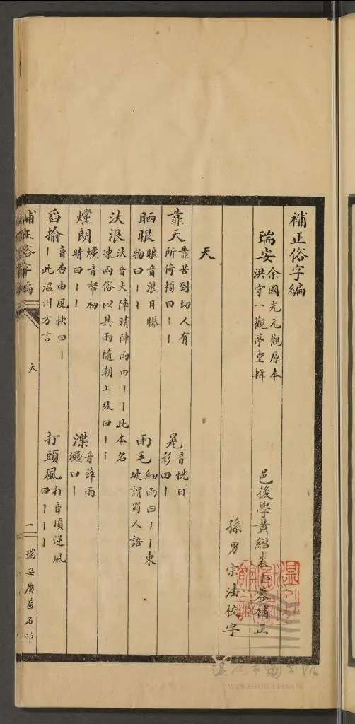《补正俗字编》,民国十三年瑞安广益石印本,温州市图书馆藏。
