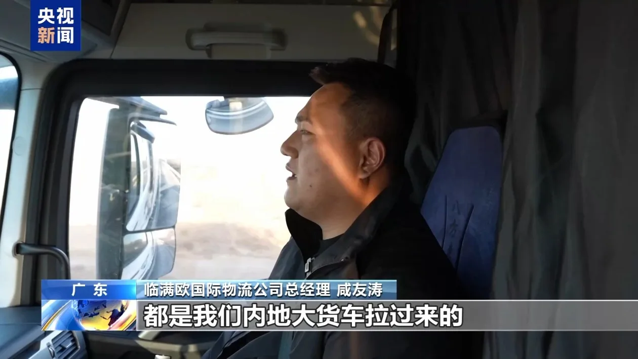 临满欧国际物流公司总经理 咸友涛:到新疆各口岸考察边境商城、边境仓。堆放的大部分货物,都是我们内地大货车拉过来的。但是需要国外的车辆入境到中国,然后换装出去。我当时就有一个疑问,我们为什么不能直接把货拉出去。