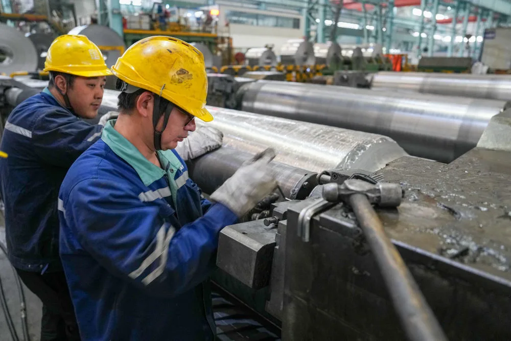 2月26日,在位于江苏省无锡市的银邦金属复合材料股份有限公司,工作人员在生产车间进行生产。