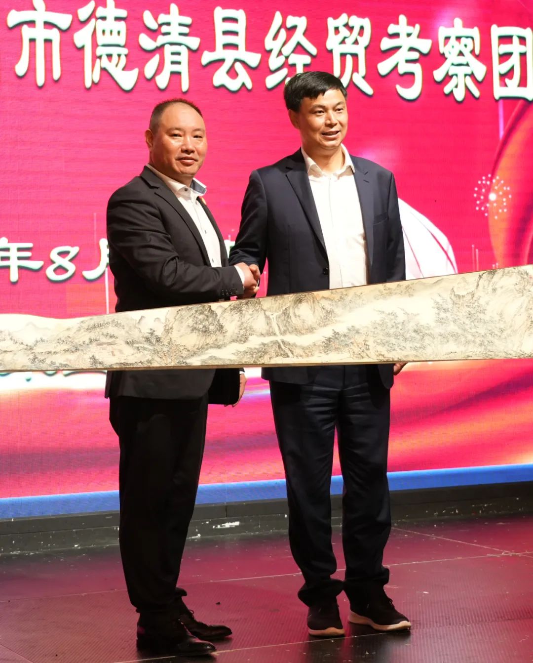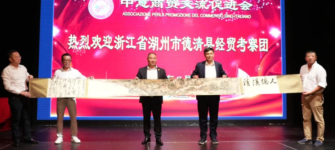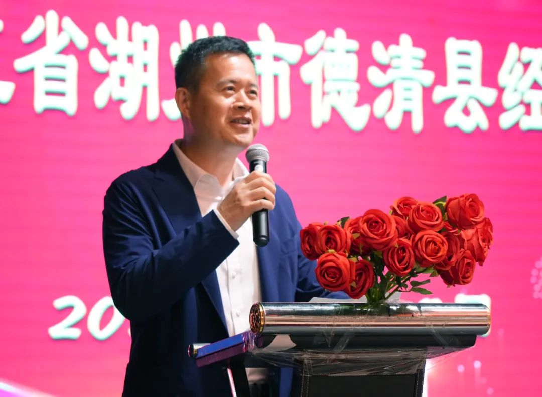 德清县经贸考察团团长、德清县委书记敖煜新致答谢词。他对意大利中意商贸交流促进会的热情款待表示感谢,并表示德清县非常重视与意大利的经贸合作,希望通过此次考察,进一步了解意大利的经贸政策和市场动态,为德清县的经济发展提供有力支持。敖煜新书记介绍了德清县概况及社会经济发展情况。德清县,浙江省湖州市辖县,位于浙江省北部,东邻桐乡市,南毗杭州市余杭区、临平区,西界湖州市安吉县,北与湖州市郊接壤,处长三角腹地;地势自西向东倾斜,呈北亚热带季风气候,常年气候特征为四季分明、光照充足、雨量充沛、温暖湿润;总面积936平方公里,辖8个镇、5个街道。2022年末,德清县常住人55,38万人,城镇化率为62.7%。德清县域历史悠久,有着良渚文化的遗迹和古代防风文化的传说。县名因濒临余不溪,取政德清明如水之义。德清有千年古刹云岫寺、宋代石桥等一批历史文化.遗迹,还孕育了沈约、孟郊、管道昇等一批历史文化名人。宁杭高铁、G25长深高速(杭宁)、S13练杭高速、S43杭州二绕、104国道、304省道、宣杭铁路、京杭运河、杭湖锡线航道穿境而过,县城距杭州市中心高铁仅16分钟车程,距长三角核心城市上海、宁波、南京均在2小时车程以内。可谓是;地理位置优越,自然风光秀丽,是一个驰名海内外又充满向往的旅游胜地。