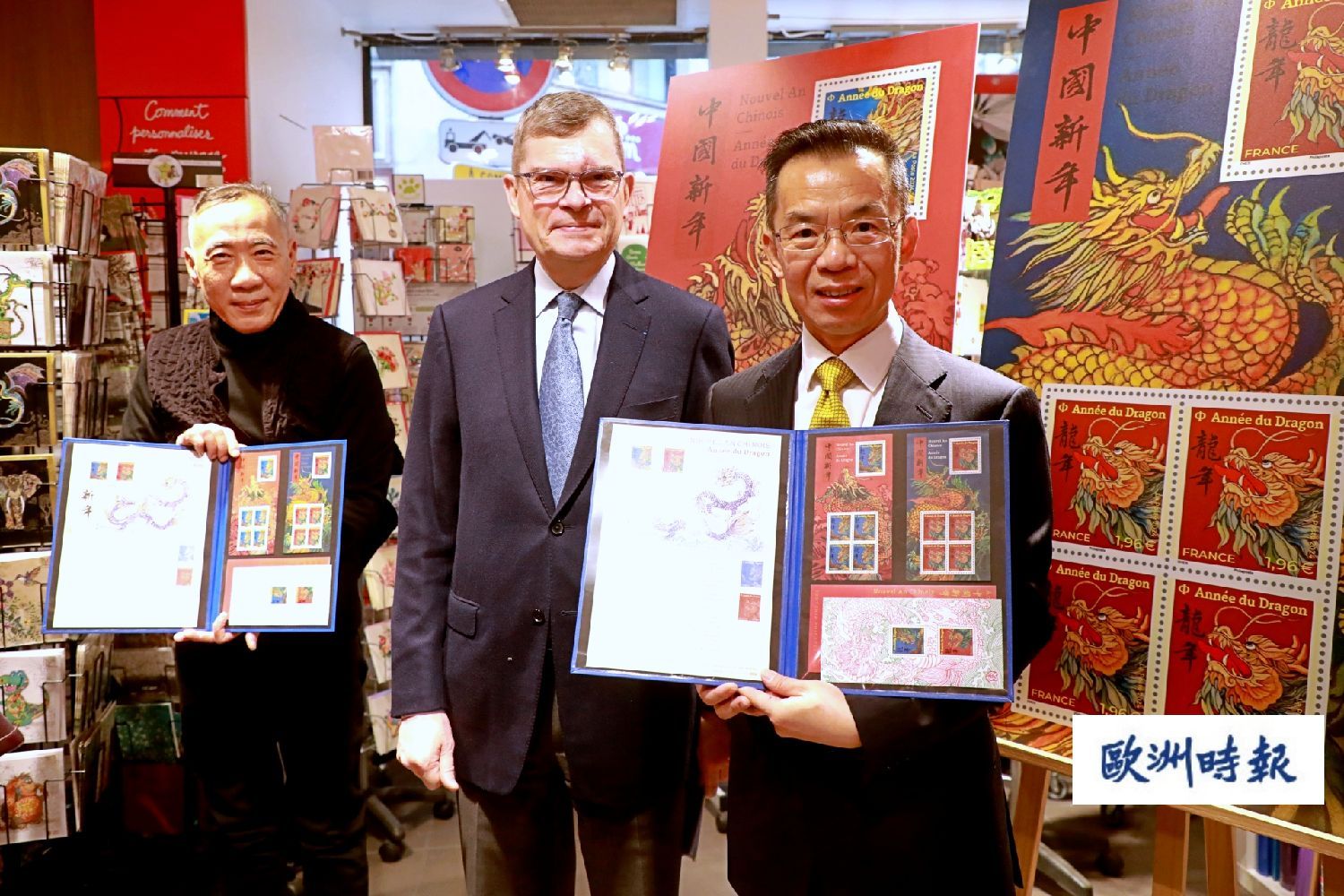 (欧洲时报记者欧文报道)法国当地时间2024年元月26日,法国邮政在位于巴黎圣拉扎车站附近法国邮政集邮墨方厅举行农历甲辰龙年邮票的首发仪式。中国驻法大使卢沙野、法国邮政欧洲和国际关系总监、万国邮政联盟运营委员会主席、欧洲邮政主席富瑟维勒(Jean Paul FORCEVILLE)等应邀出席首发仪式。