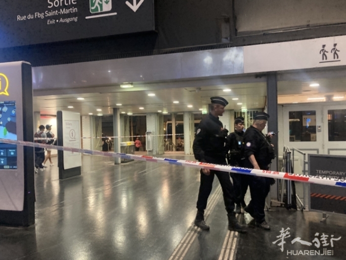 案发现场附近的Faubourg Saint-Martin街一侧设立了安全围栏,大量警力来到现场,路人被要求绕行。