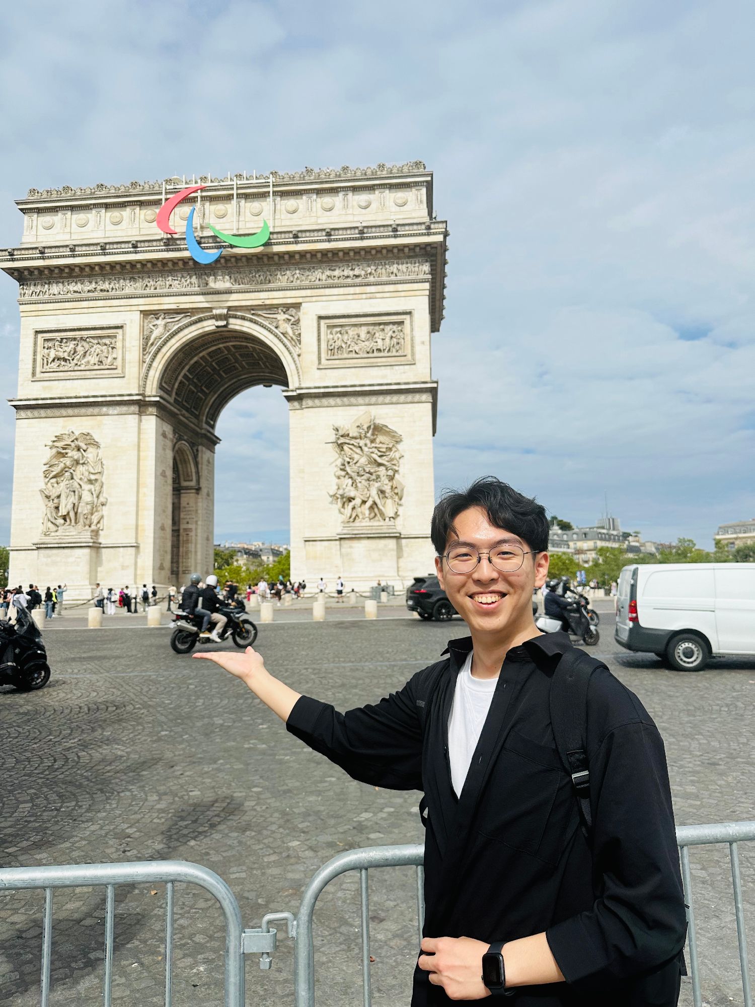 陈鹏翰与凯旋门合影。(图片来源:受访者供图)