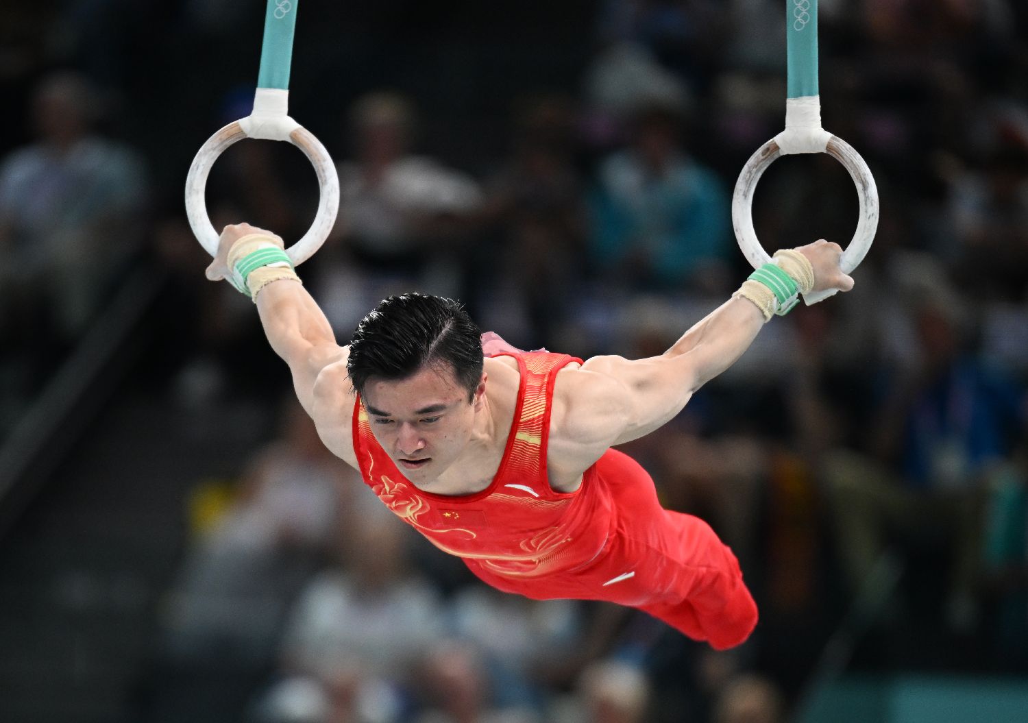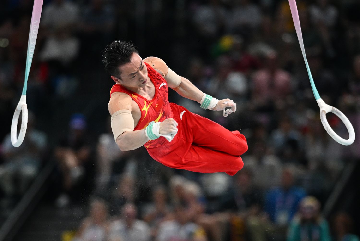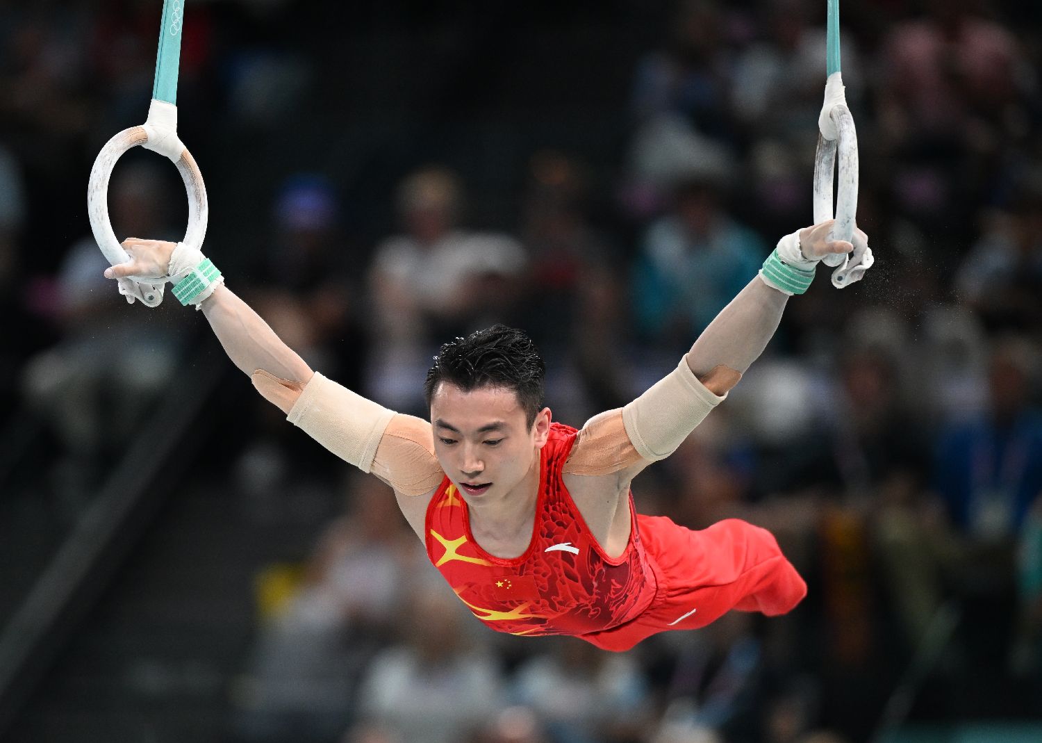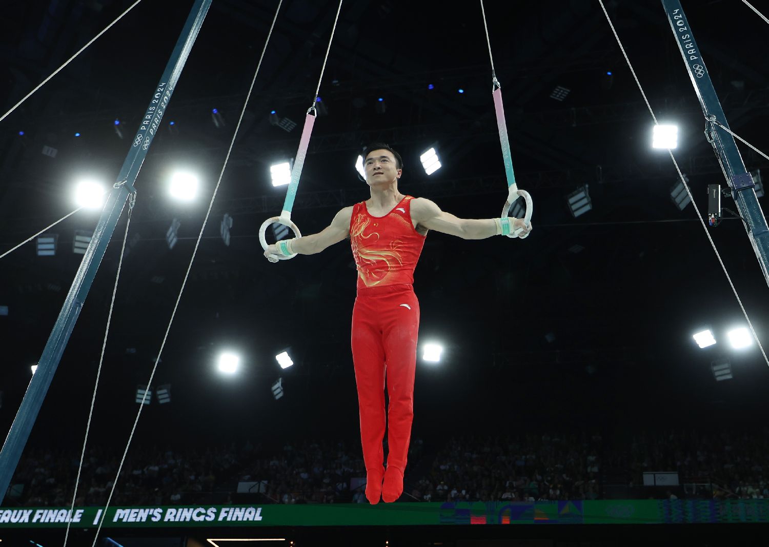 4日,在巴黎奥运会体操男子吊环决赛中,中国选手刘洋获得冠军,邹敬园获得亚军,希腊选手佩德罗尼亚斯获得季军。