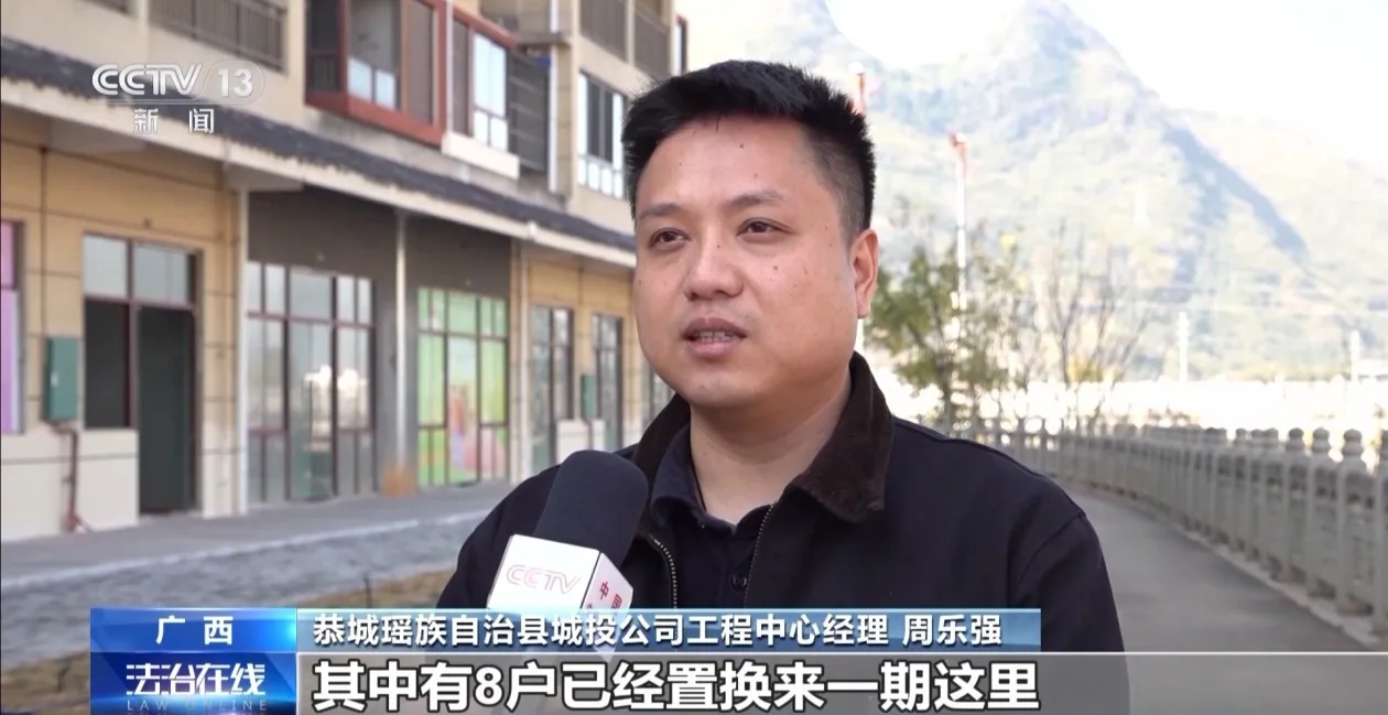 恭城瑶族自治县城投公司工程中心经理 周乐强:二期24户未能按时交房的业主,其中有8户已经置换来一期这里,还有8户选择了在恭城异地置换,还有8户选择了退款,所以这24户我们已全部解决。包括业主子女的义务教育阶段,我们也全部实现了顺利入学。目前我们也加强了小区的物业管理,并恢复了我们小区的门岗值守。