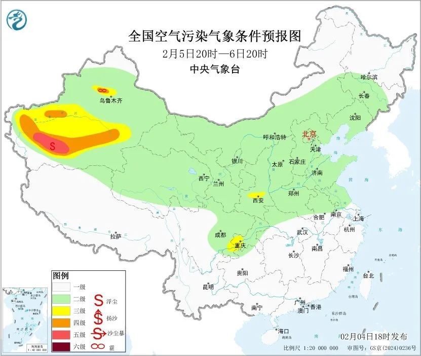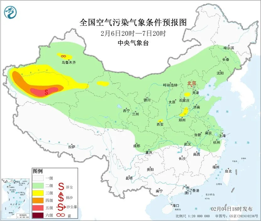 4日夜间至5日白天,区域中北部等地大气扩散条件一般,部分地区有轻度霾。5日夜间起,区域大部地区大气扩散条件转好。