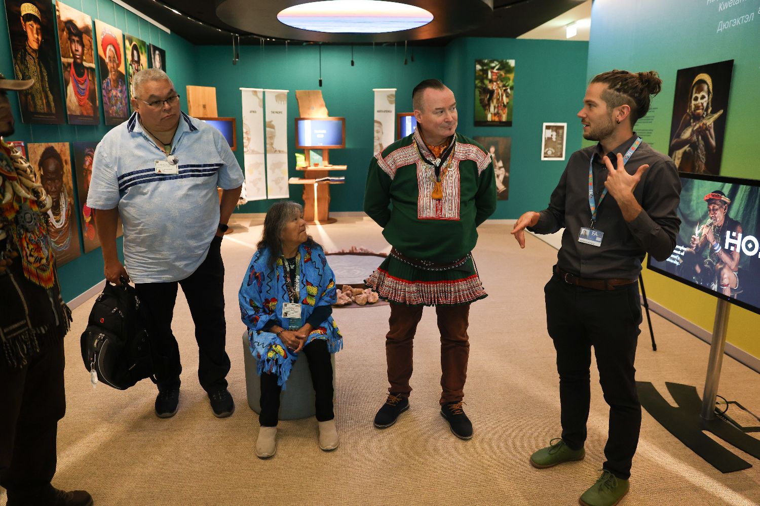 10月16日,在意大利罗马,嘉宾在联合国粮食农业博物馆原住民展区参观。