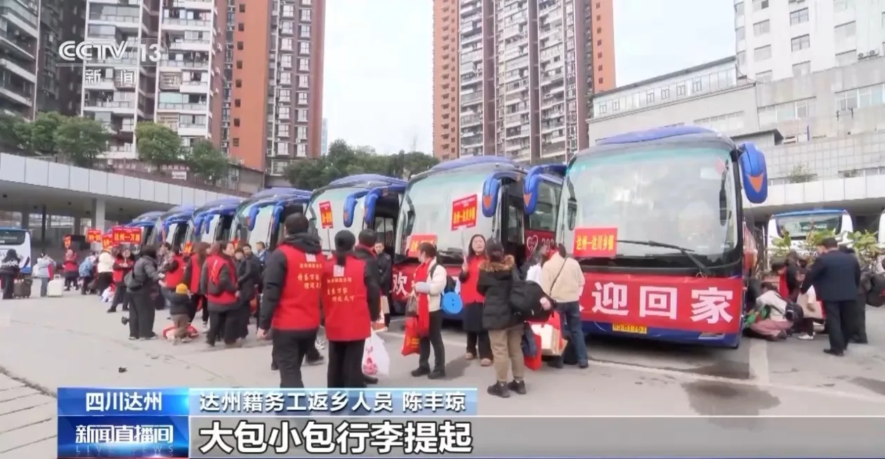 在四川达州,当地多部门联动,提前摸排返乡人员的工作和实际需求,并用“点对点”专车接送,让在外务工人员温暖返乡。