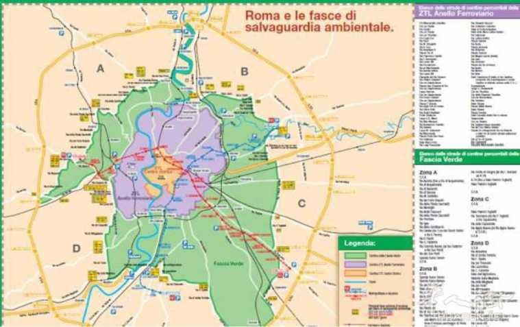 据romatoday网消息,罗马市政府规定,在2017年11月19日、12月17日,以及2018年1月21日、2月11日这4个周日,从早7:30至中午12:30,下午16:30至20:30时间段内,机动车不得进入“绿色区域”(如图示)