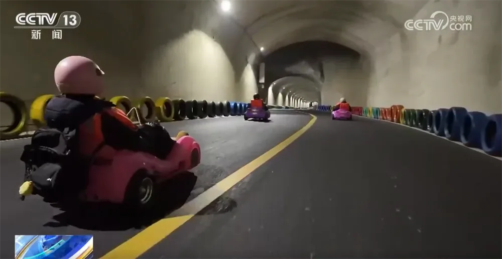 体验了悬崖动车之后,游客有两种方式可以下山,除了常规的缆车之外,还有一种惊险刺激的新玩法,就是乘坐这种类似于卡丁车一样的载具,实现快速下山。
